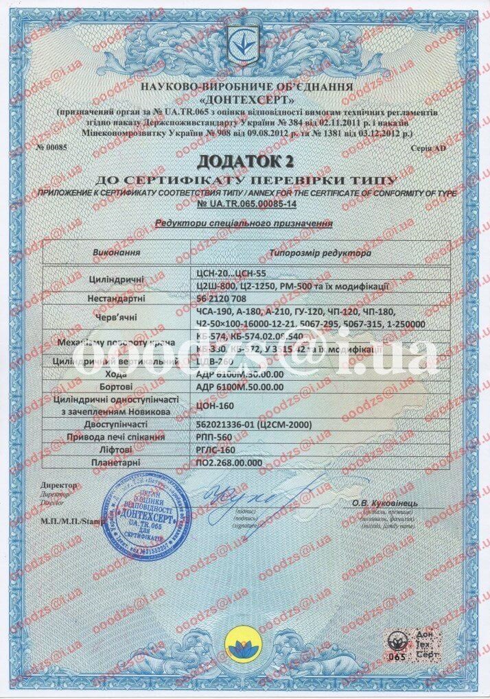 - Додаток №2 до сертифіката відповідності типу на зубчасті редуктори.