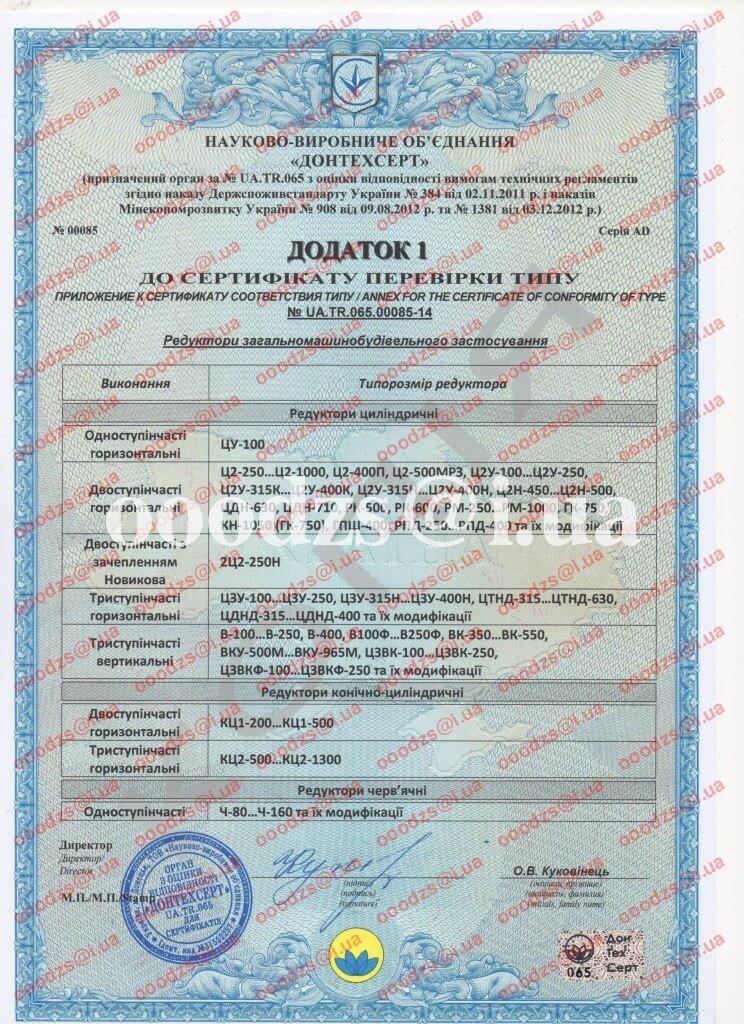 - Додаток №1 до сертифіката відповідності типу на зубчасті редуктори.