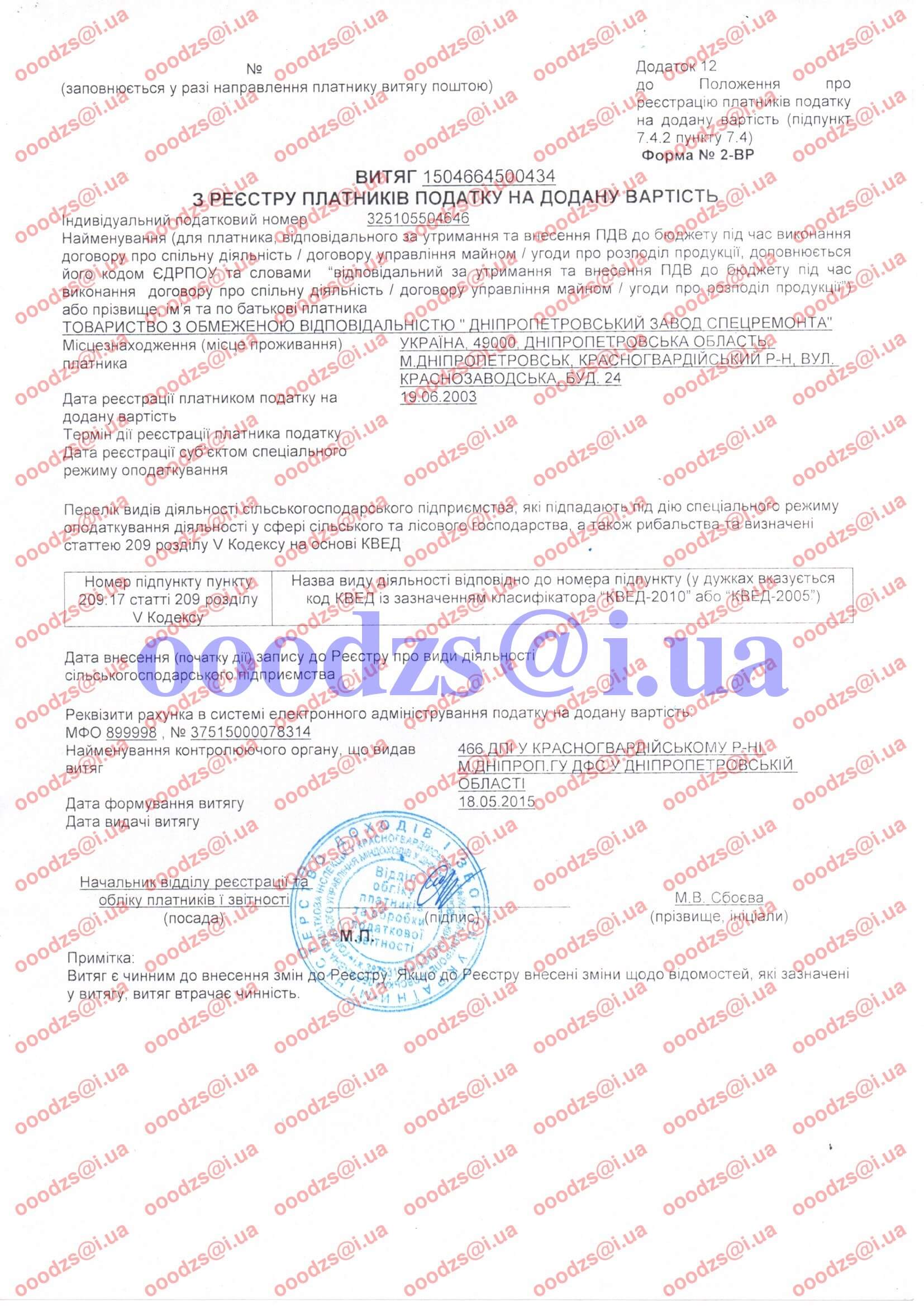 - Витяг з реєстру платника податку на додану вартість